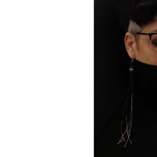 FAIZA long rubber tassel earrings Gold & Black