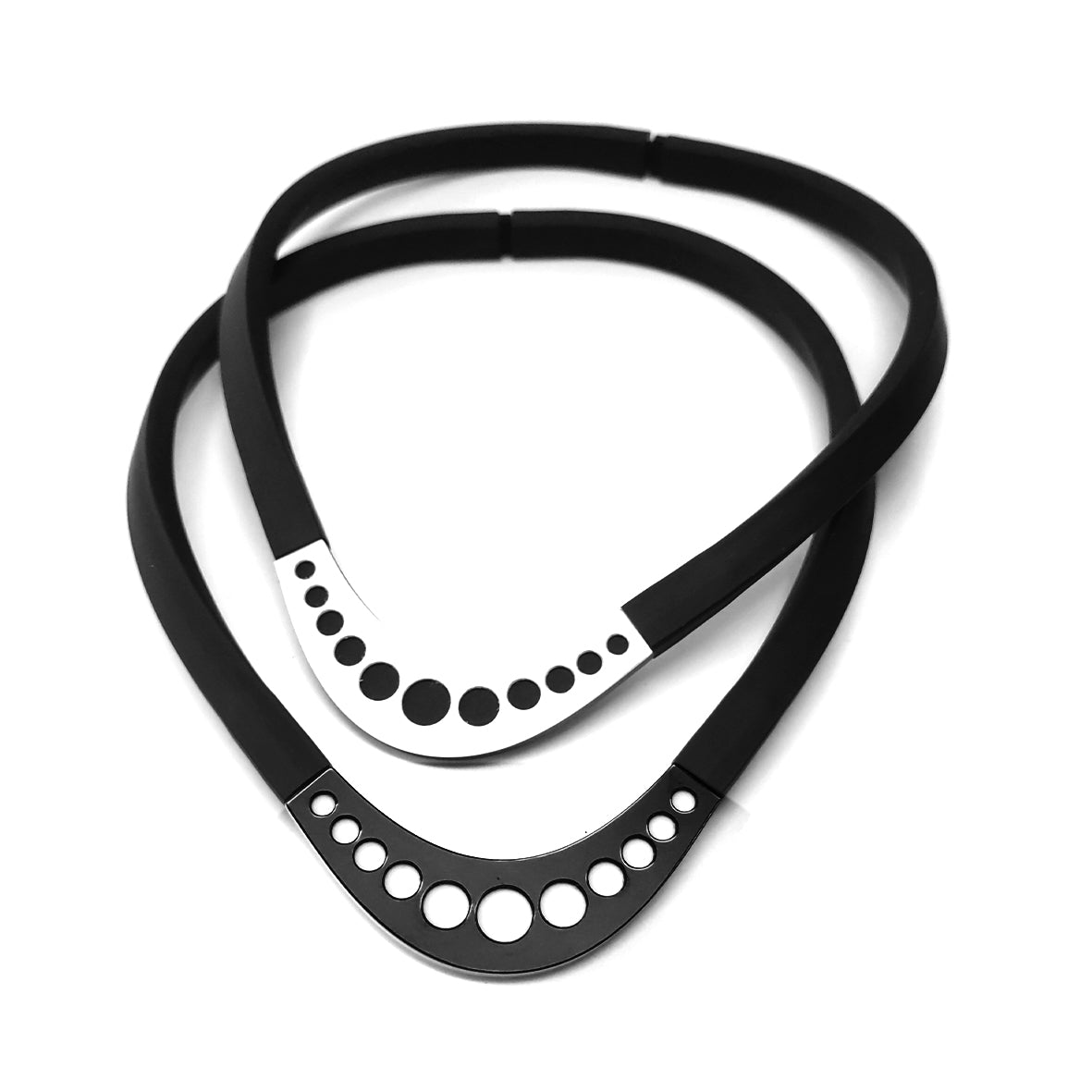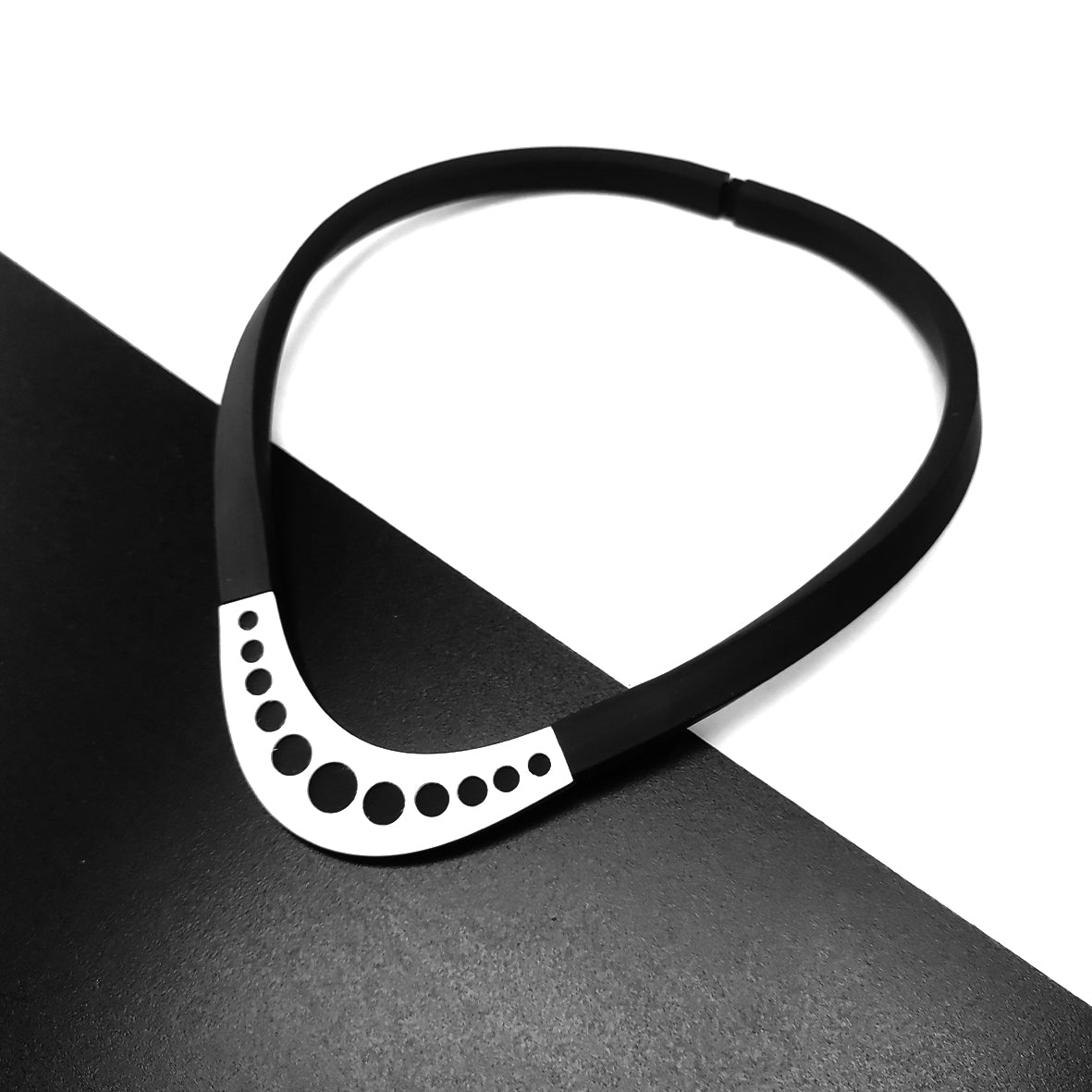 Its very smart concept let you to adjust it. This lightweight and hypoallergenic choker is very comfortable due to its soft rubber "neck strap". Perfect for everyone who's allergic to metal or natural silicone!