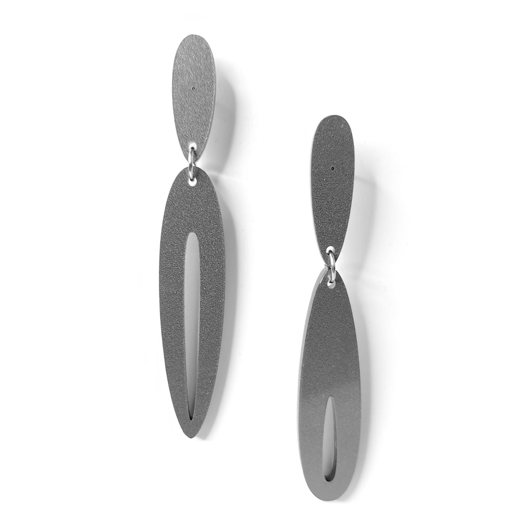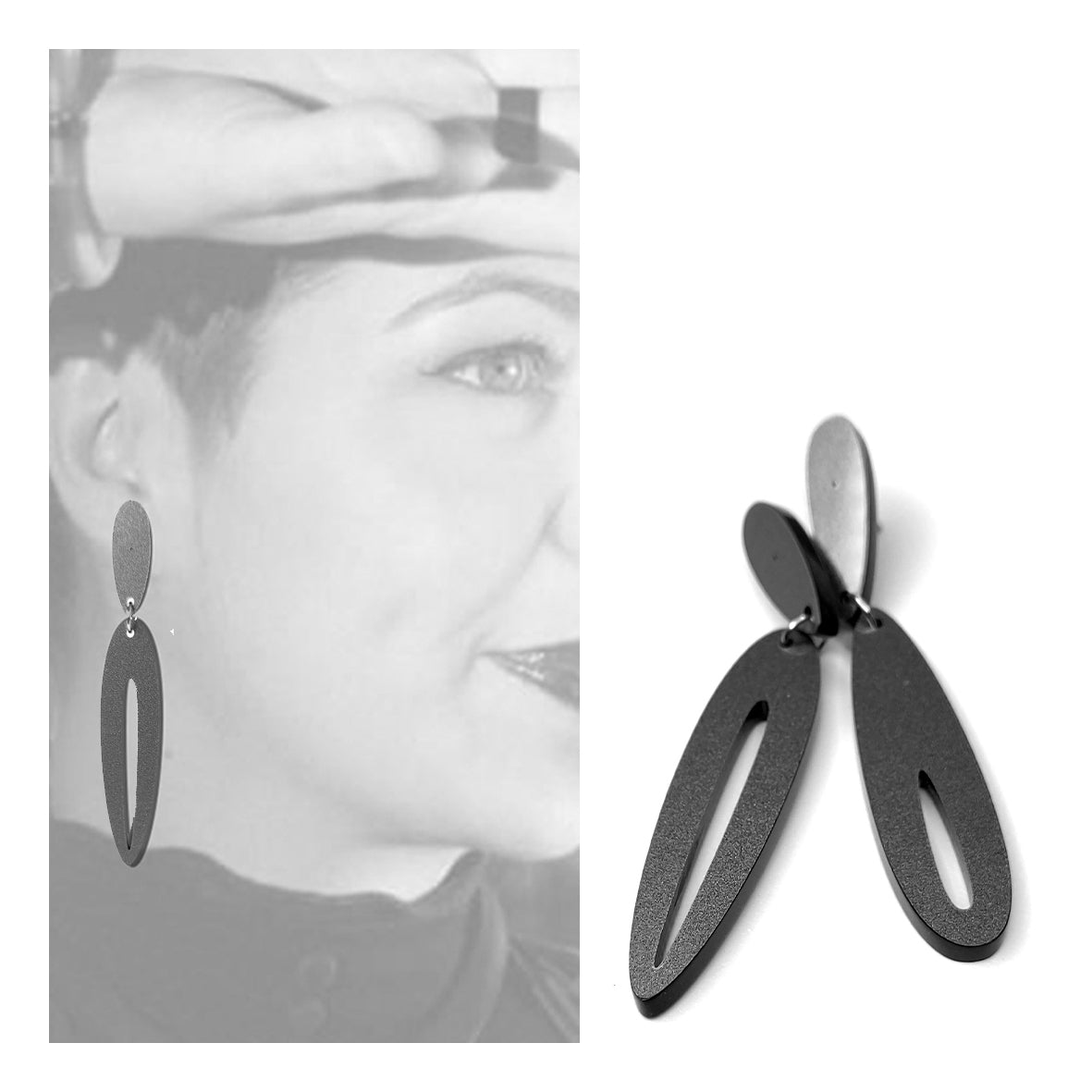 Amadea retro-futuristic asymmetric earrings in women’s like shapes reminding Modigliani’s poetic spirit.