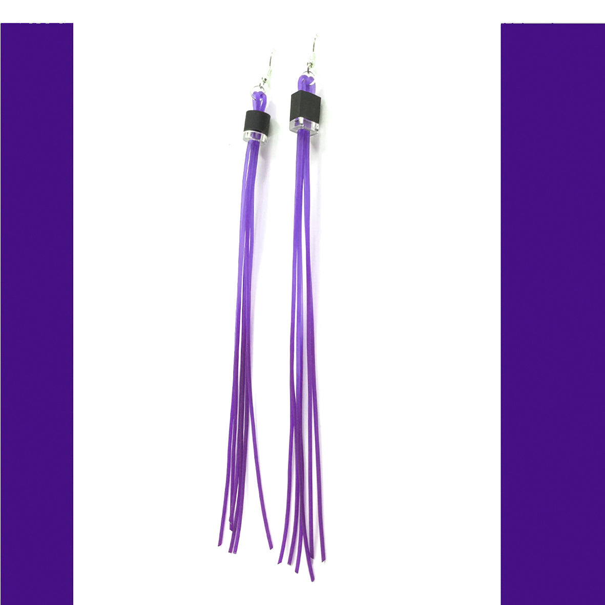 STROMBOLI long tassel hand dyed rubber earrings.