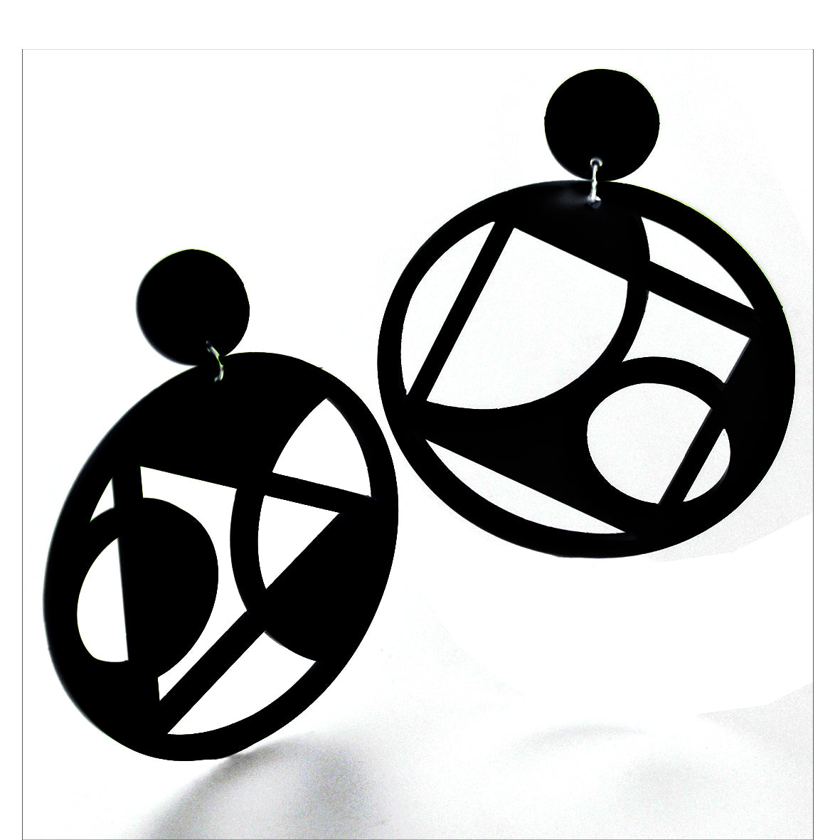 CIRCLE lightweight graphic post & drop modern earrings with asymmetric shapes inspired by 20's-30's Constructivism Era with Avant-Garde aesthetic.