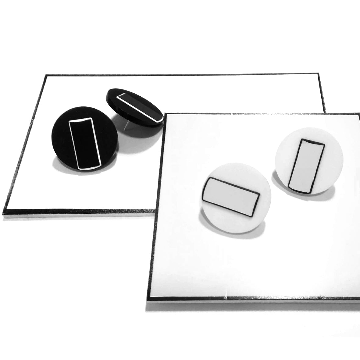 Marcia graphic stud earrings. The contrasting outline is hand-drawn and may vary slightly for each pair.