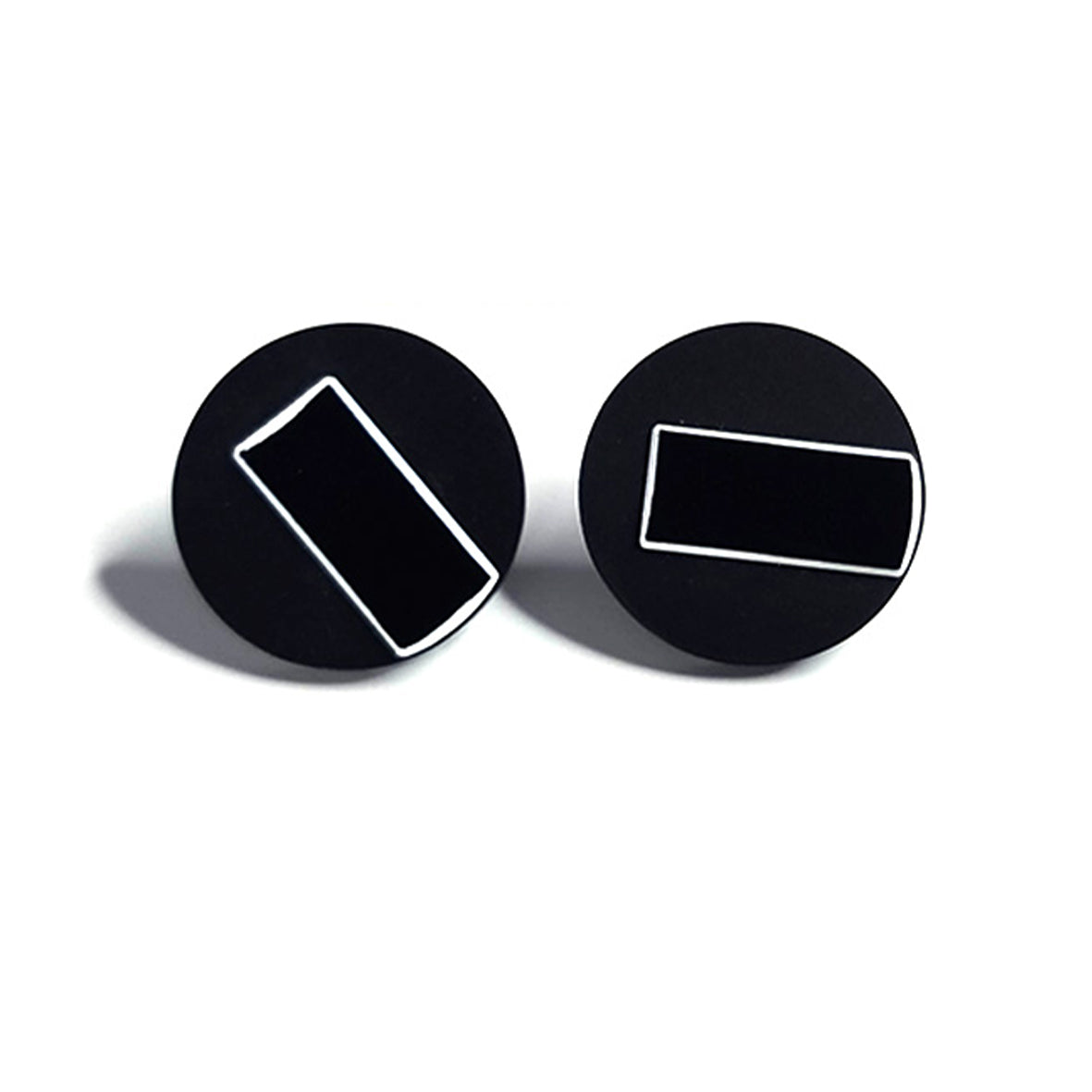 Marcia graphic stud earrings. The contrasting outline is hand-drawn and may vary slightly for each pair.