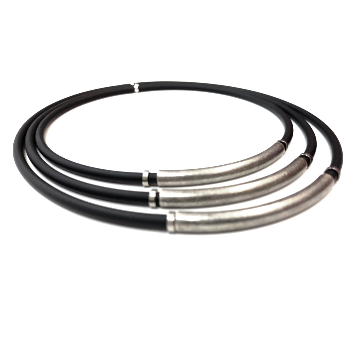 | Material | matt finish soft-touch rubber Vintage Sterling Silver plated Brass, Nickel Free, Hypoallergenic (clasps) |