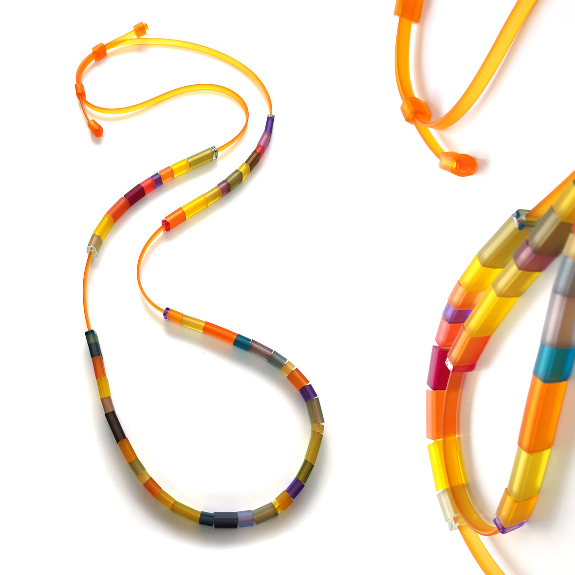 MOZAIK, soft and versatile long necklace with a smart concept to adjust it.