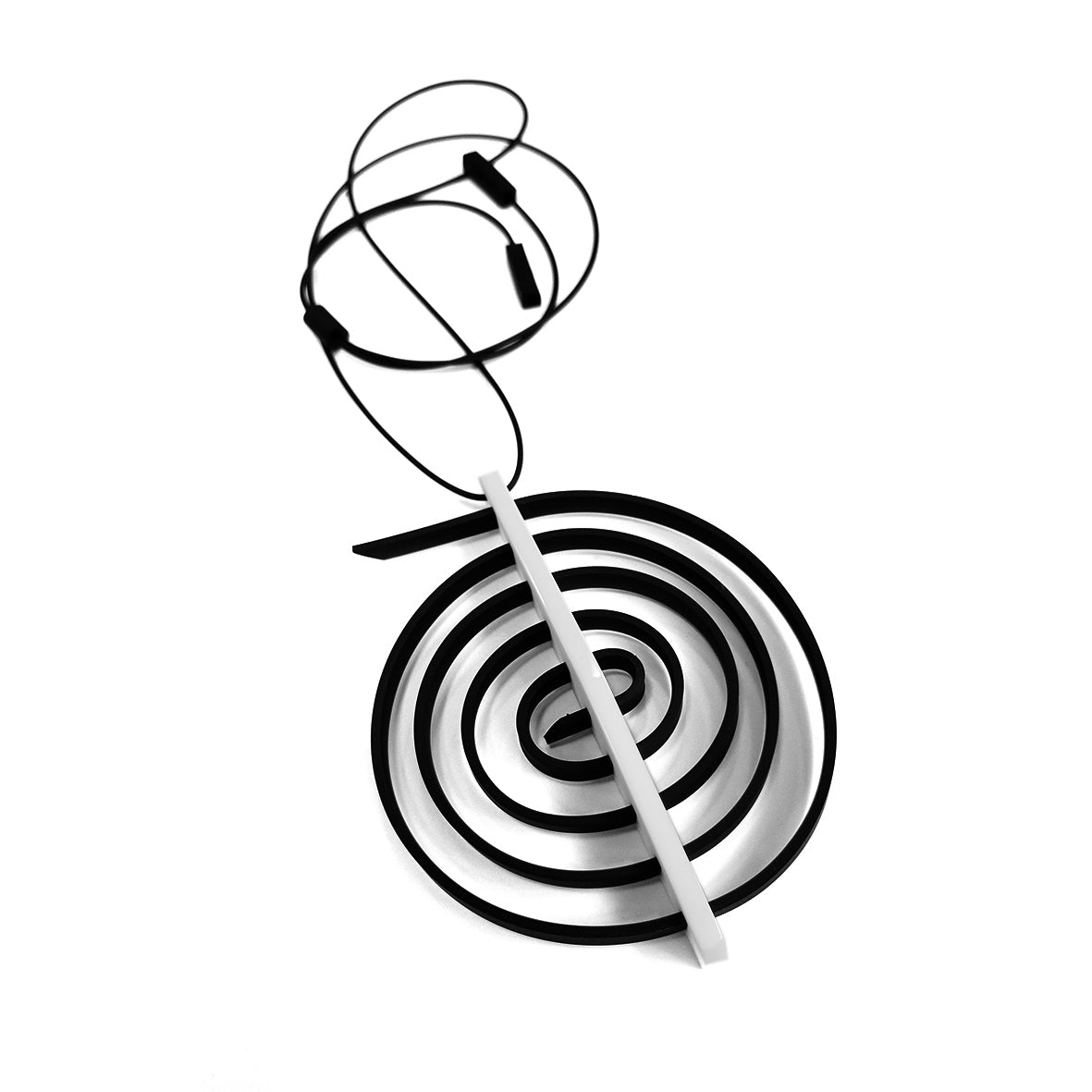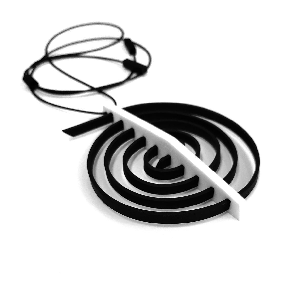 ORSOLA, contemporary pendant for any occasion. Featuring a smart adjustable system, it’s very comfortable with its soft rubber "neck cord" The soft-touch matt finish rubber is hand-transformed with love and care. All Acrylic elements are hand-finished to be smooth and shiny. Each piece of jewelry is handcrafted in our studio in Paris, France.