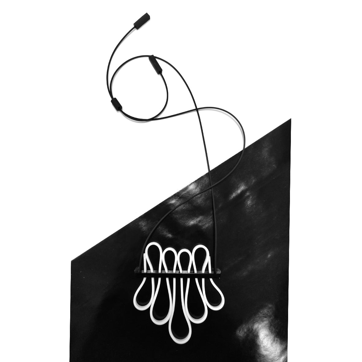 ROMY , contemporary pendant for any occasion. Featuring a smart adjustable system, it’s very comfortable with its soft rubber "neck cord".