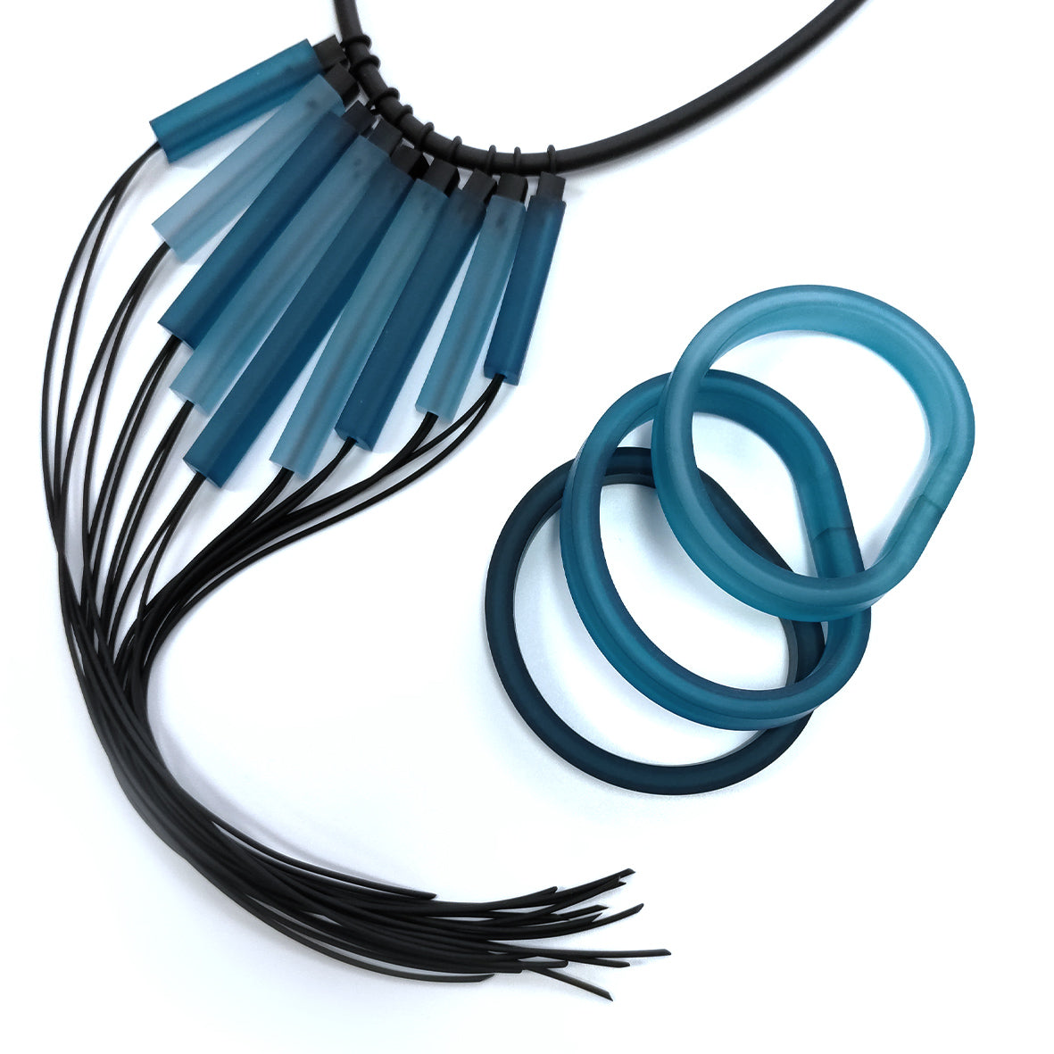 WANAKA necklace + Drim Trio - set of 3 soft rubber bracelets in gradient tones with invisible anti-skid acrylic clasp.