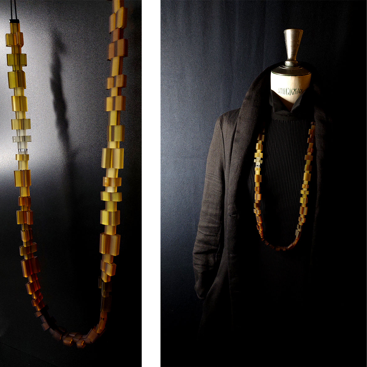 All Acrylic elements are hand-finished to be smooth and shiny. The soft-touch matt finish rubber is artfully hand-tinted and hand-transformed with love and care. Each piece of jewelry is handcrafted in our studio in Paris, France.<