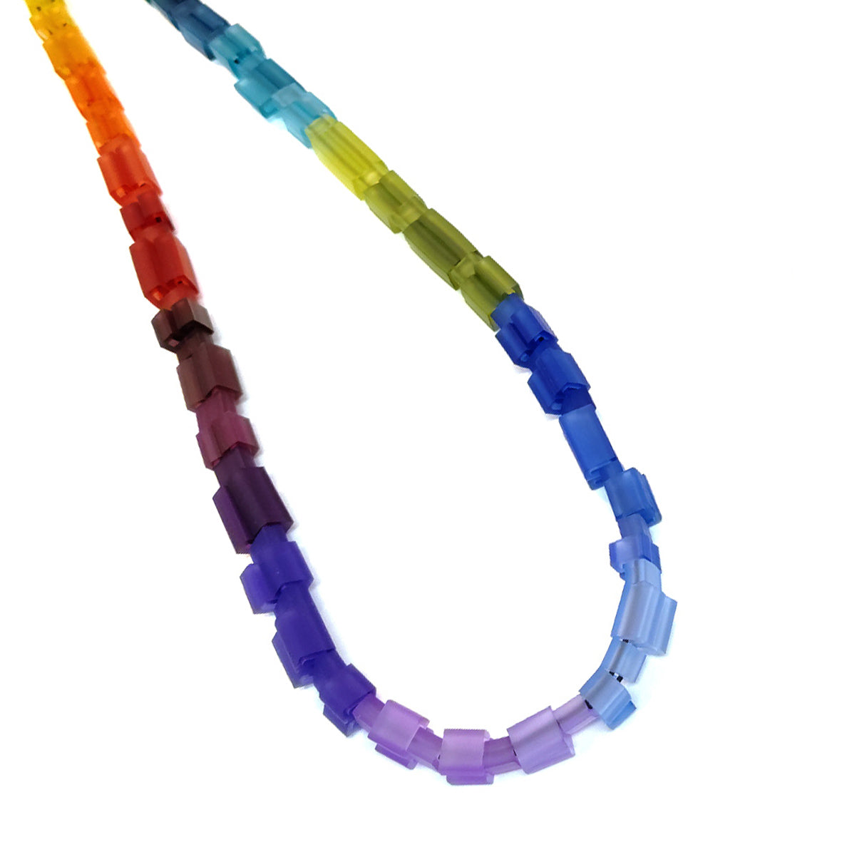 All Acrylic elements are hand-finished to be smooth and shiny. The soft-touch matt finish rubber is artfully hand-tinted and hand-transformed with love and care. Each piece of jewelry is handcrafted in our studio in Paris, France.<
