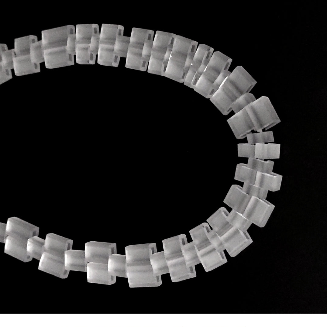 All Acrylic elements are hand-finished to be smooth and shiny. The soft-touch matt finish rubber is artfully hand-transformed with love and care. Each piece of jewelry is handcrafted in our studio in Paris, France.<